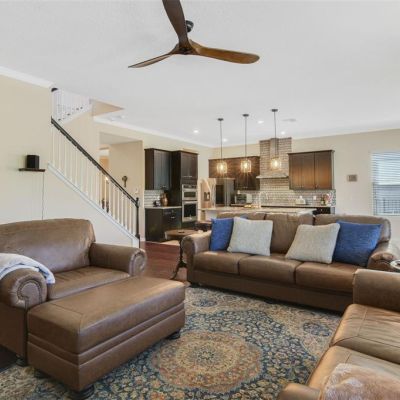 Ceiling Fan(s), Crown Molding, High Ceilings, Kitchen/Family Room Combo, Smart Home, Split Bedroom, Stone Counters, Thermostat, Walk-In Closet(s), Wet Bar, Window Treatments