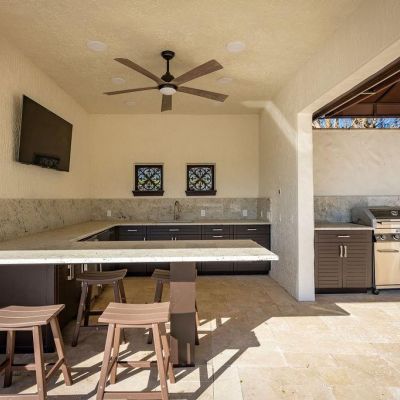 Balcony, French Doors, Irrigation System, Lighting, Outdoor Kitchen, Sidewalk