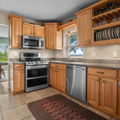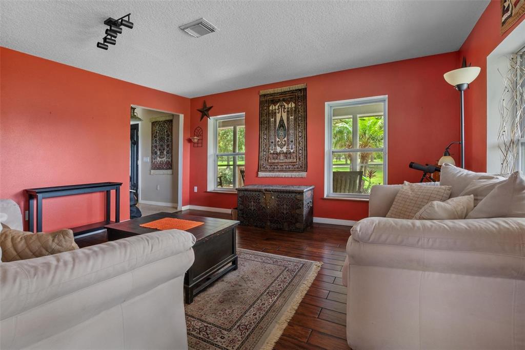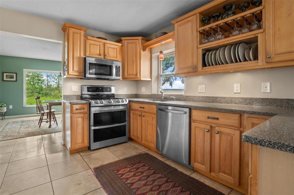 Ceiling Fan(s), Eating Space In Kitchen, High Ceilings, Kitchen/Family Room Combo, Living Room/Dining Room Combo, Open Floorplan, Solid Surface Counters, Solid Wood Cabinets, Split Bedroom, Walk-In Closet(s), Window Treatments