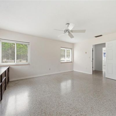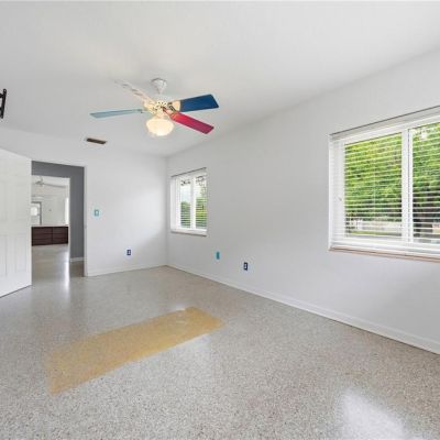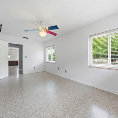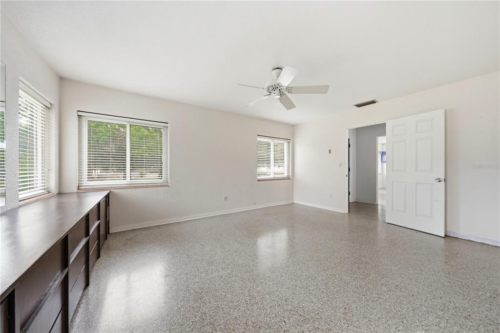 Ceiling Fan(s), Primary Bedroom Main Floor, Solid Surface Counters, Thermostat, Window Treatments