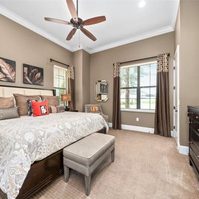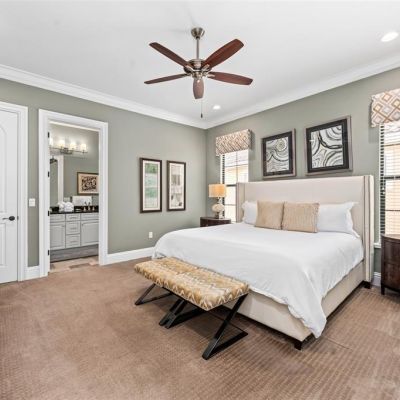 Ceiling Fan(s), Crown Molding, Eating Space In Kitchen, High Ceilings, Open Floorplan, Primary Bedroom Main Floor, PrimaryBedroom Upstairs, Thermostat, Walk-In Closet(s), Wet Bar