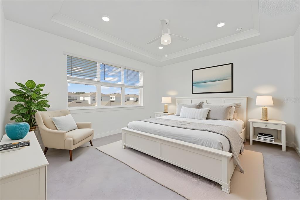 Ceiling Fan(s), Eating Space In Kitchen, Living Room/Dining Room Combo, Open Floorplan, PrimaryBedroom Upstairs, Solid Surface Counters, Split Bedroom, Thermostat, Tray Ceiling(s), Walk-In Closet(s), Window Treatments