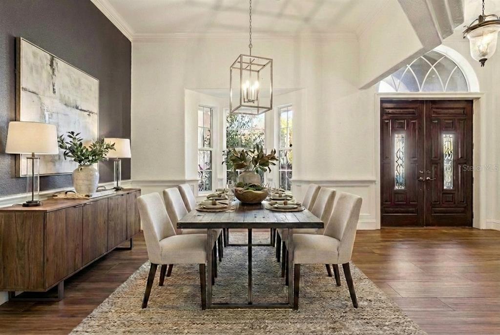 Built-in Features, Ceiling Fan(s), Crown Molding, Eating Space In Kitchen, High Ceilings, Kitchen/Family Room Combo, Open Floorplan, Primary Bedroom Main Floor, Solid Surface Counters, Split Bedroom, Stone Counters, Walk-In Closet(s)