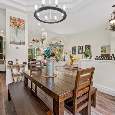 Built-in Features, Ceiling Fan(s), Eating Space In Kitchen, High Ceilings, Kitchen/Family Room Combo, Open Floorplan, Primary Bedroom Main Floor, Solid Surface Counters, Solid Wood Cabinets, Split Bedroom, Stone Counters, Tray Ceiling(s), Walk-In Closet(s)