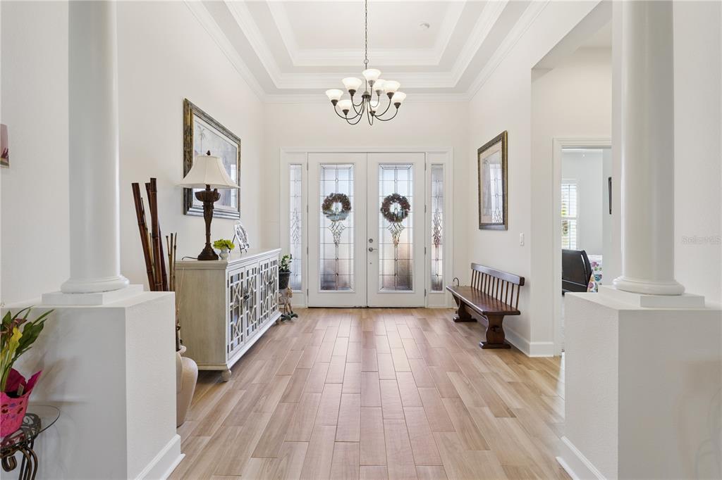 Ceiling Fan(s), Eating Space In Kitchen, High Ceilings, Kitchen/Family Room Combo, Open Floorplan, Primary Bedroom Main Floor, Solid Wood Cabinets, Stone Counters, Thermostat, Tray Ceiling(s), Walk-In Closet(s)