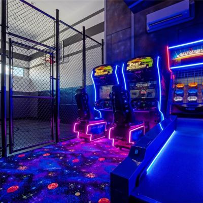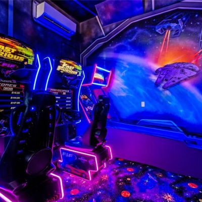 Lighting, Outdoor Grill, Outdoor Kitchen, Sidewalk, Sliding Doors