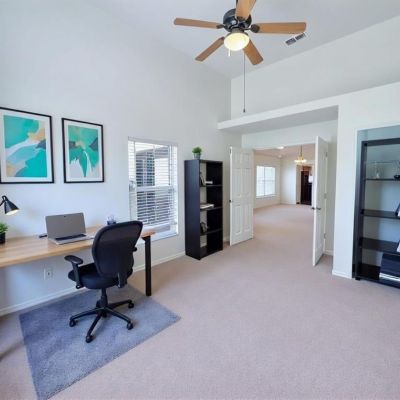 Ceiling Fan(s), High Ceilings, Kitchen/Family Room Combo, Open Floorplan, Primary Bedroom Main Floor, Skylight(s), Thermostat, Walk-In Closet(s)