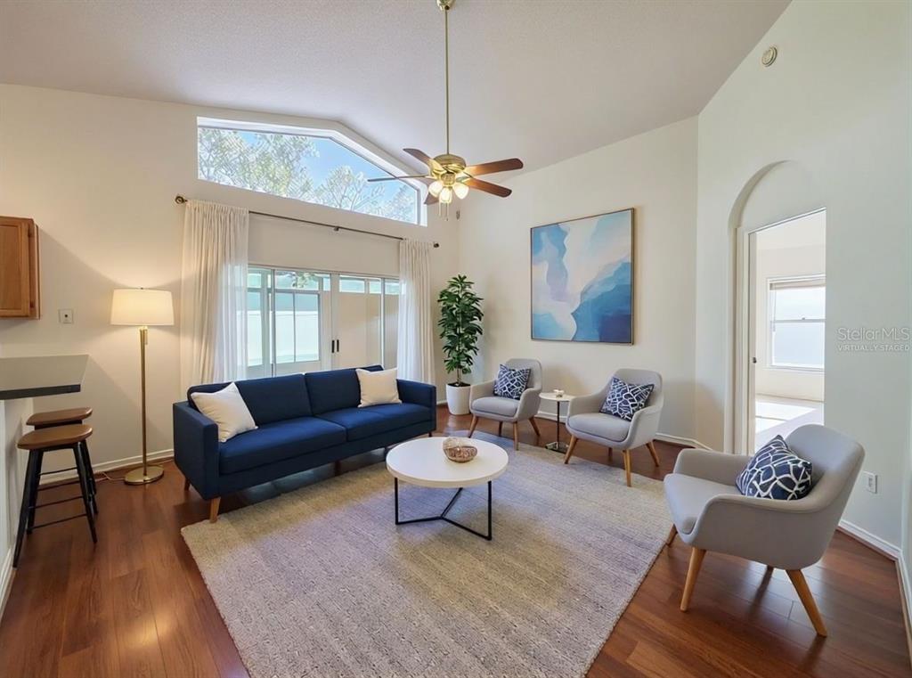 Ceiling Fan(s), High Ceilings, Kitchen/Family Room Combo, Open Floorplan, Primary Bedroom Main Floor, Skylight(s), Thermostat, Walk-In Closet(s)