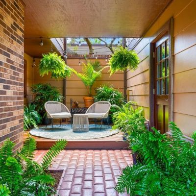 Courtyard, French Doors, Garden, Irrigation System, Rain Gutters, Shade Shutter(s)