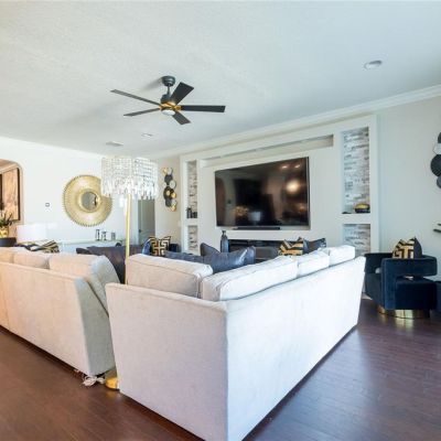 Ceiling Fan(s), Crown Molding, Eating Space In Kitchen, High Ceilings, Kitchen/Family Room Combo, Open Floorplan, PrimaryBedroom Upstairs, Split Bedroom, Stone Counters, Tray Ceiling(s), Walk-In Closet(s), Window Treatments