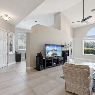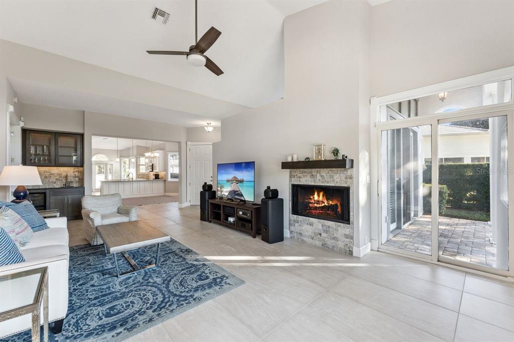 Built-in Features, Ceiling Fan(s), Eating Space In Kitchen, High Ceilings, Open Floorplan, Solid Surface Counters, Split Bedroom, Thermostat, Vaulted Ceiling(s), Walk-In Closet(s), Wet Bar, Window Treatments