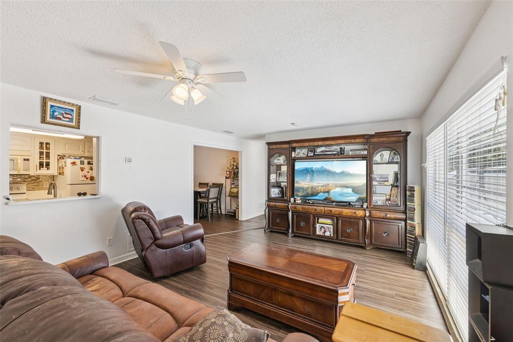 Ceiling Fan(s), Kitchen/Family Room Combo, Living Room/Dining Room Combo, Primary Bedroom Main Floor, Solid Wood Cabinets, Split Bedroom, Stone Counters, Thermostat