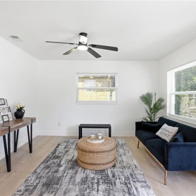 Ceiling Fan(s), Eating Space In Kitchen, Kitchen/Family Room Combo, Living Room/Dining Room Combo, Split Bedroom, Thermostat