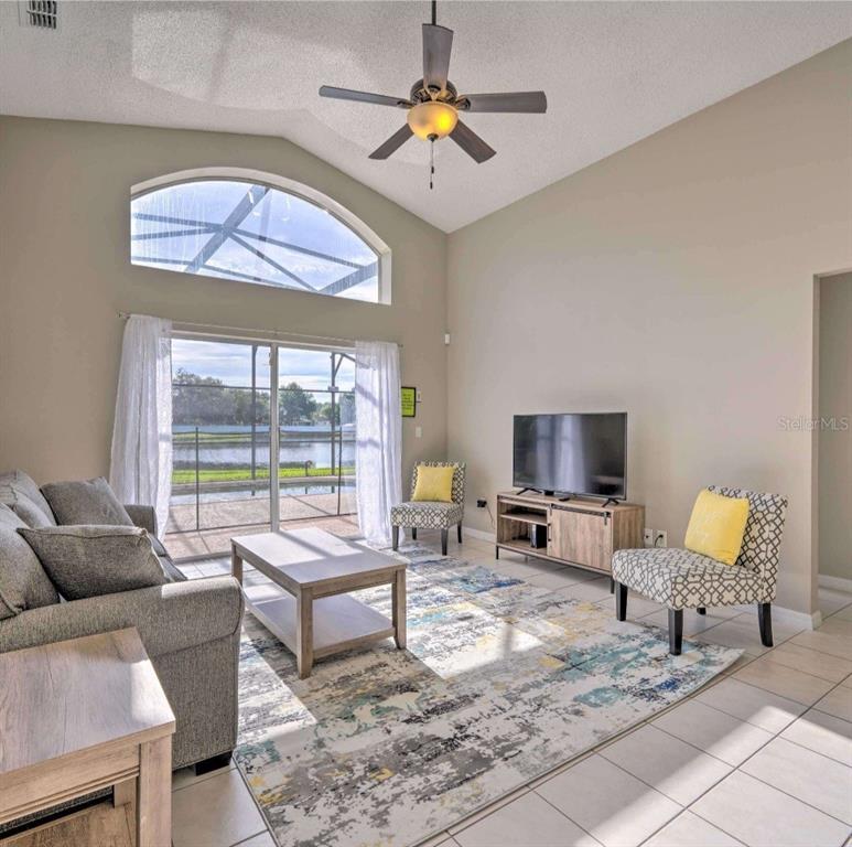Ceiling Fan(s), Eating Space In Kitchen, High Ceilings, Kitchen/Family Room Combo, Living Room/Dining Room Combo, Open Floorplan, Stone Counters, Vaulted Ceiling(s), Walk-In Closet(s), Window Treatments