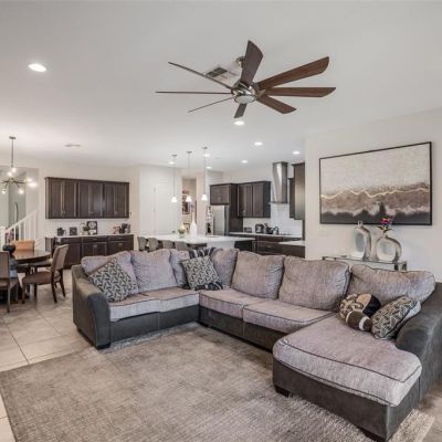 Ceiling Fan(s), Eating Space In Kitchen, High Ceilings, Living Room/Dining Room Combo, Open Floorplan, Primary Bedroom Main Floor, Stone Counters, Thermostat, Tray Ceiling(s), Walk-In Closet(s)