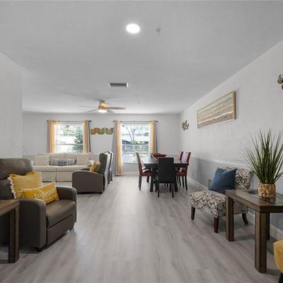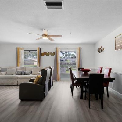 Ceiling Fan(s), Eating Space In Kitchen, Living Room/Dining Room Combo, Solid Surface Counters
