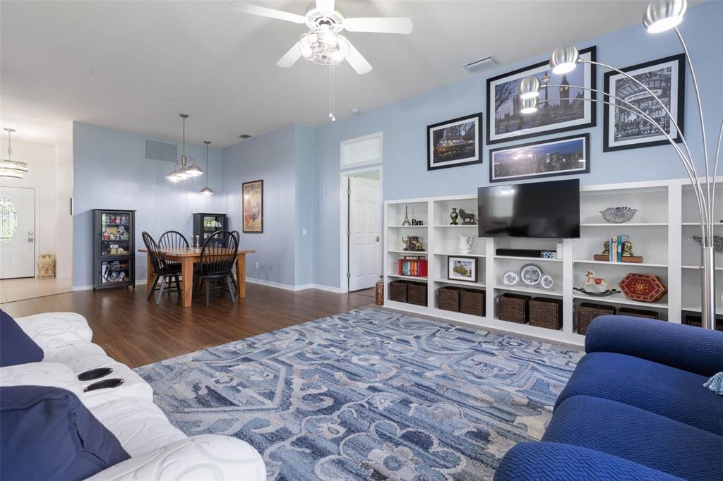 Built-in Features, Ceiling Fan(s), Living Room/Dining Room Combo, Open Floorplan, Primary Bedroom Main Floor, Solid Wood Cabinets, Split Bedroom, Stone Counters, Thermostat, Walk-In Closet(s), Window Treatments