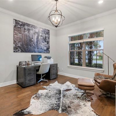 Built-in Features, Ceiling Fan(s), Coffered Ceiling(s), Eating Space In Kitchen, High Ceilings, Kitchen/Family Room Combo, Open Floorplan, Primary Bedroom Main Floor, Solid Surface Counters, Solid Wood Cabinets, Split Bedroom, Stone Counters, Thermostat, Walk-In Closet(s), Window Treatments