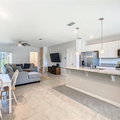 Ceiling Fan(s), High Ceilings, Kitchen/Family Room Combo, Open Floorplan, PrimaryBedroom Upstairs, Solid Surface Counters, Solid Wood Cabinets, Stone Counters, Thermostat, Walk-In Closet(s)