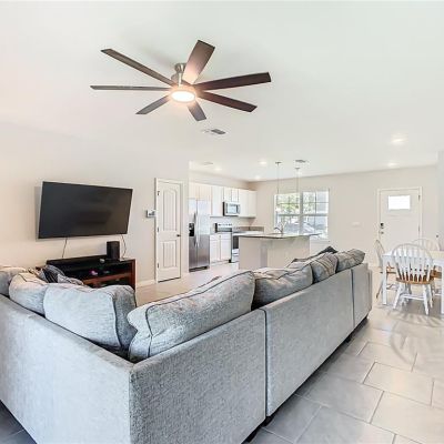 Ceiling Fan(s), High Ceilings, Kitchen/Family Room Combo, Open Floorplan, PrimaryBedroom Upstairs, Solid Surface Counters, Solid Wood Cabinets, Stone Counters, Thermostat, Walk-In Closet(s)
