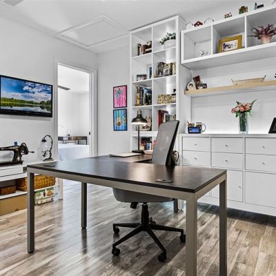 Ceiling Fan(s), High Ceilings, Kitchen/Family Room Combo, Living Room/Dining Room Combo, Open Floorplan, Solid Surface Counters, Thermostat