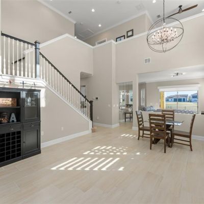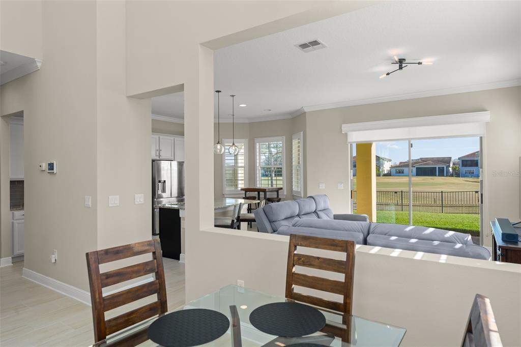 Crown Molding, Eating Space In Kitchen, High Ceilings, In Wall Pest System, Kitchen/Family Room Combo, Open Floorplan, Primary Bedroom Main Floor, Solid Surface Counters, Solid Wood Cabinets, Thermostat, Vaulted Ceiling(s), Walk-In Closet(s), Window Treatments