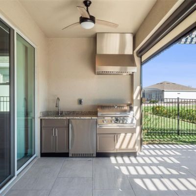 Lighting, Outdoor Grill, Outdoor Kitchen, Sidewalk, Sliding Doors, Sprinkler Metered