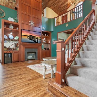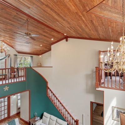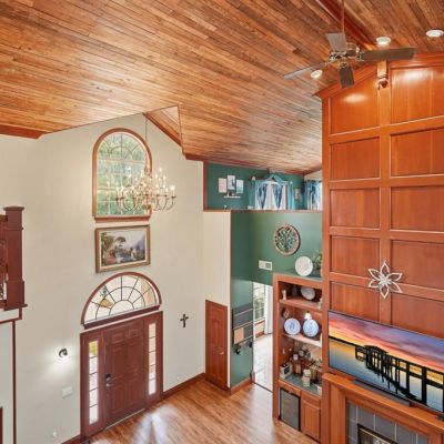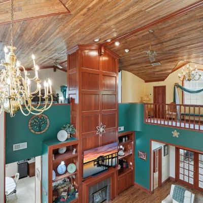 Built-in Features, Ceiling Fan(s), Dry Bar, Dumbwaiter, Eating Space In Kitchen, High Ceilings, PrimaryBedroom Upstairs, Skylight(s), Solid Surface Counters, Split Bedroom, Stone Counters, Vaulted Ceiling(s), Walk-In Closet(s), Wet Bar, Window Treatments