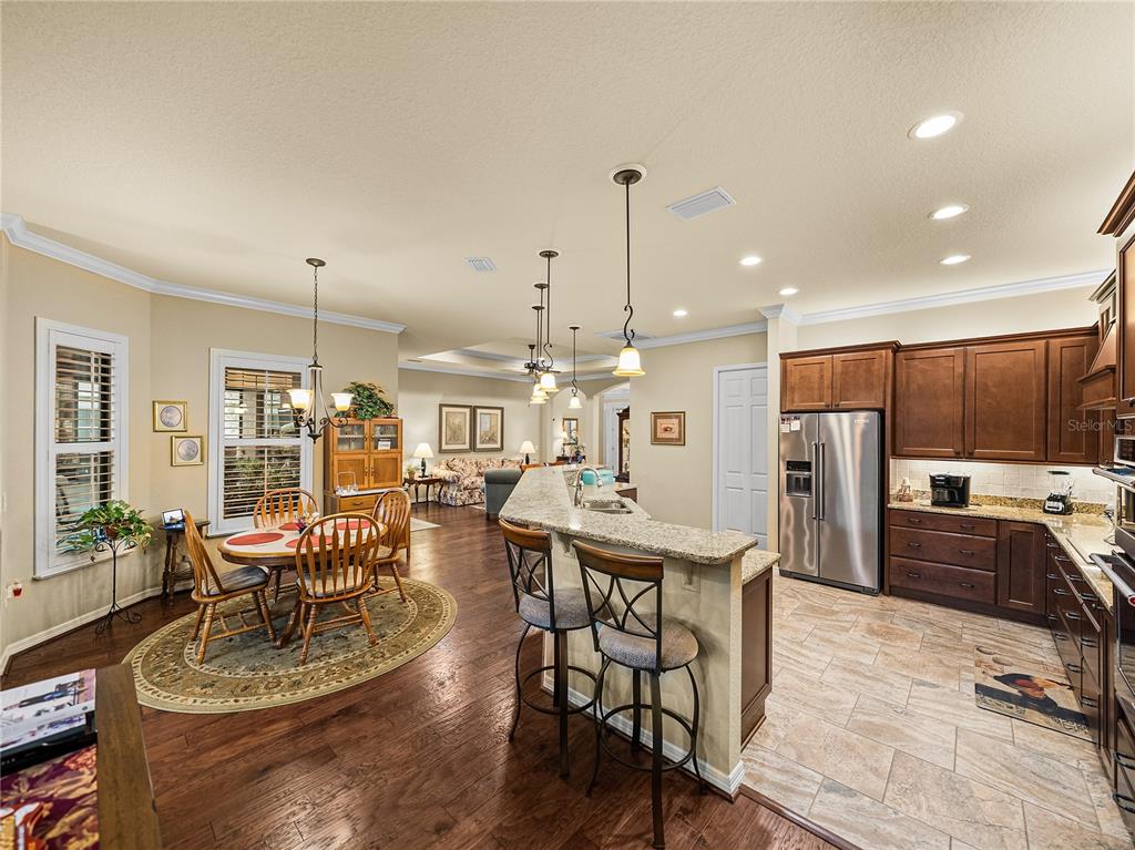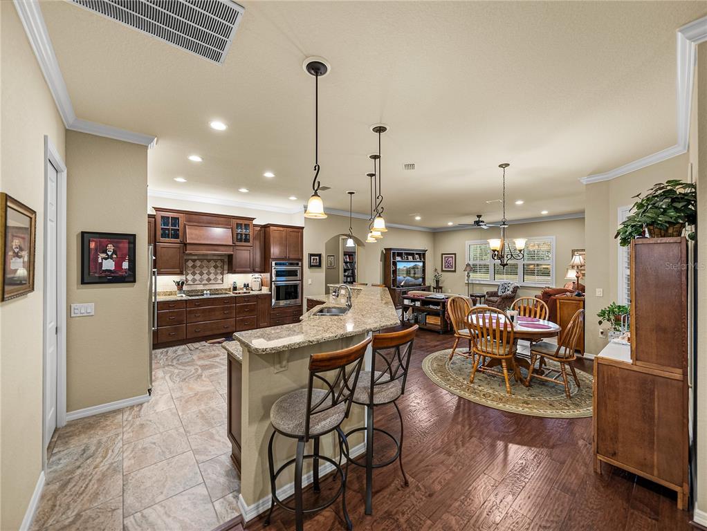 Built-in Features, Ceiling Fan(s), Coffered Ceiling(s), Crown Molding, High Ceilings, Living Room/Dining Room Combo, Open Floorplan, Solid Wood Cabinets, Stone Counters, Thermostat, Walk-In Closet(s), Window Treatments
