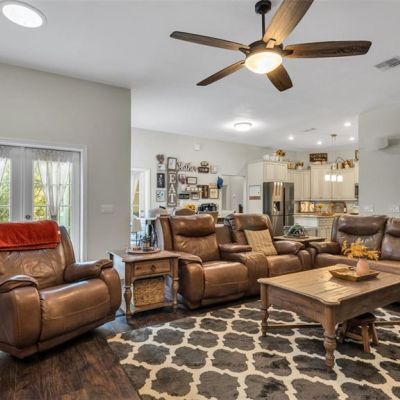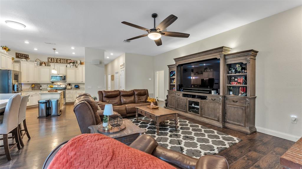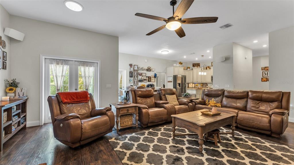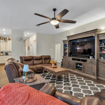 Ceiling Fan(s), High Ceilings, Kitchen/Family Room Combo, Primary Bedroom Main Floor, Skylight(s), Solid Surface Counters, Split Bedroom, Thermostat, Walk-In Closet(s), Window Treatments