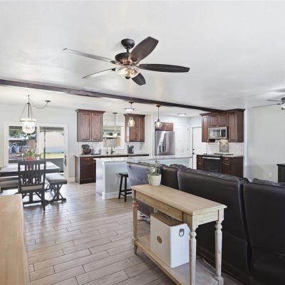 Ceiling Fan(s), Eating Space In Kitchen, Open Floorplan, Stone Counters