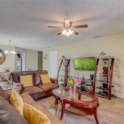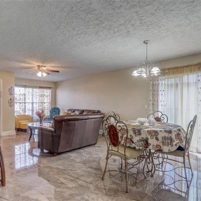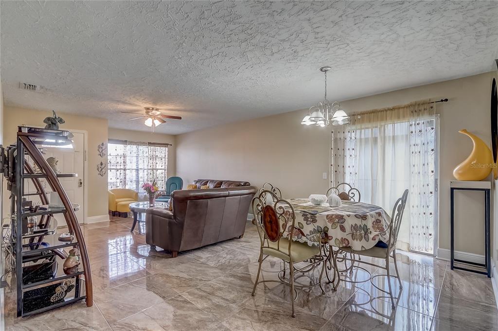 Ceiling Fan(s), High Ceilings, Living Room/Dining Room Combo, Open Floorplan, Stone Counters, Thermostat, Window Treatments