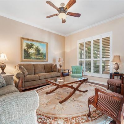 Built-in Features, Ceiling Fan(s), Crown Molding, High Ceilings, Kitchen/Family Room Combo, Open Floorplan, Primary Bedroom Main Floor, Solid Wood Cabinets, Stone Counters, Vaulted Ceiling(s), Walk-In Closet(s), Window Treatments