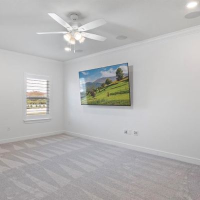 Ceiling Fan(s), Crown Molding, Eating Space In Kitchen, High Ceilings, In Wall Pest System, Kitchen/Family Room Combo, Open Floorplan, Primary Bedroom Main Floor, Solid Surface Counters, Solid Wood Cabinets, Split Bedroom, Stone Counters, Thermostat, Tray Ceiling(s), Walk-In Closet(s)