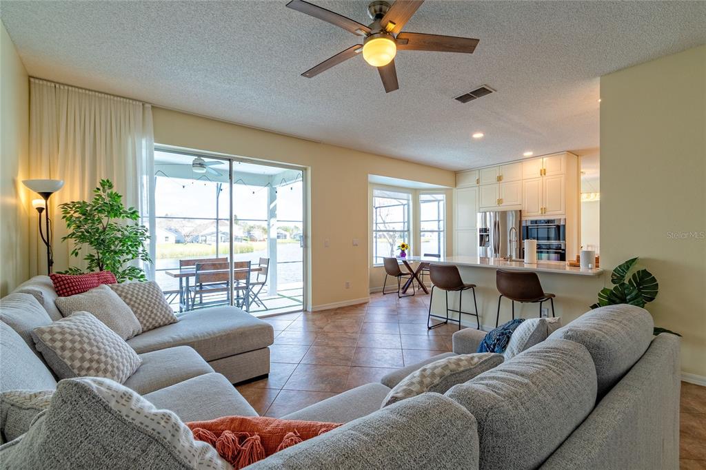 Ceiling Fan(s), High Ceilings, Kitchen/Family Room Combo, Living Room/Dining Room Combo, Open Floorplan, PrimaryBedroom Upstairs, Solid Surface Counters, Thermostat, Walk-In Closet(s), Window Treatments