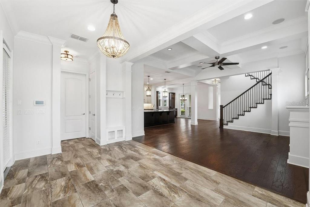 Built-in Features, Ceiling Fan(s), Coffered Ceiling(s), Crown Molding, Dry Bar, Eating Space In Kitchen, High Ceilings, In Wall Pest System, Open Floorplan, Primary Bedroom Main Floor, Solid Surface Counters, Tray Ceiling(s), Vaulted Ceiling(s), Walk-In Closet(s)