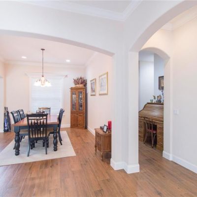 Ceiling Fan(s), Crown Molding, Eating Space In Kitchen, High Ceilings, Open Floorplan, Primary Bedroom Main Floor, Solid Surface Counters, Solid Wood Cabinets, Thermostat, Walk-In Closet(s), Window Treatments