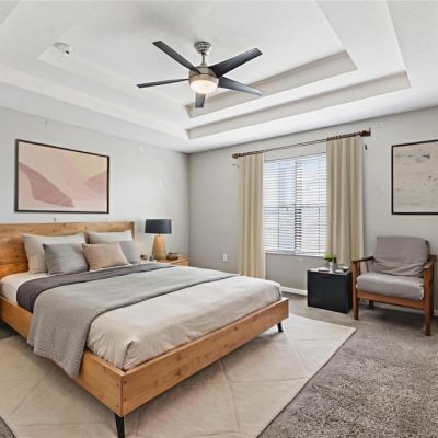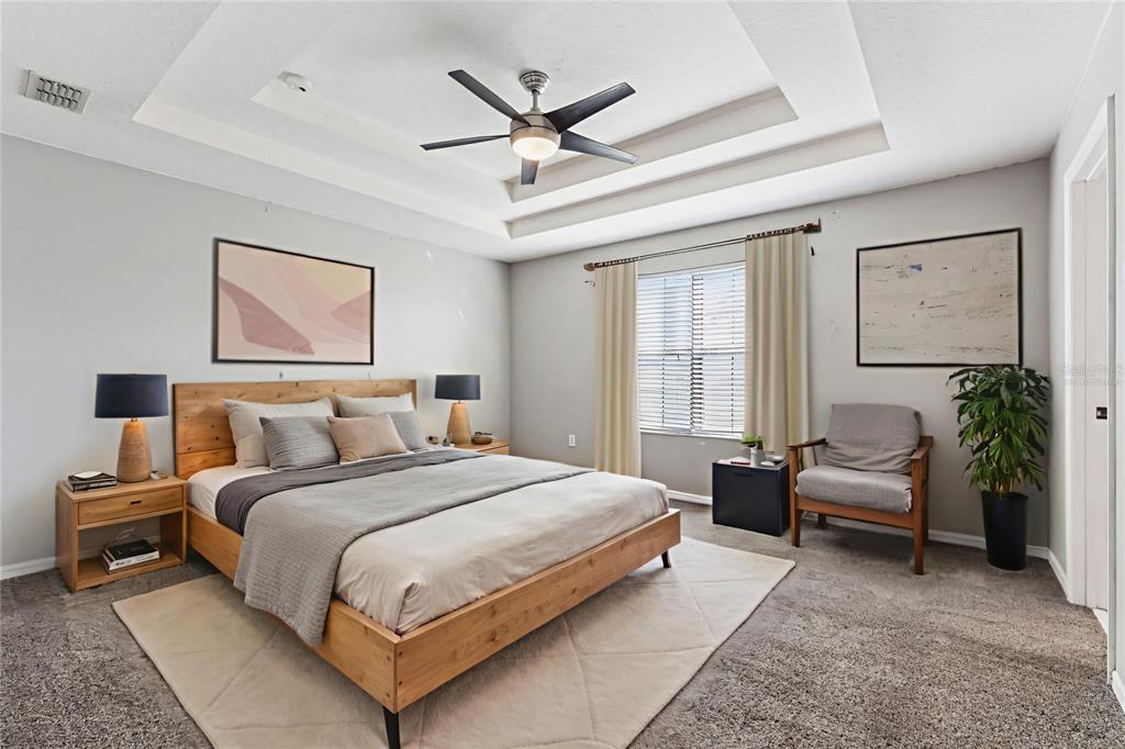 Ceiling Fan(s), High Ceilings, PrimaryBedroom Upstairs, Tray Ceiling(s), Walk-In Closet(s)