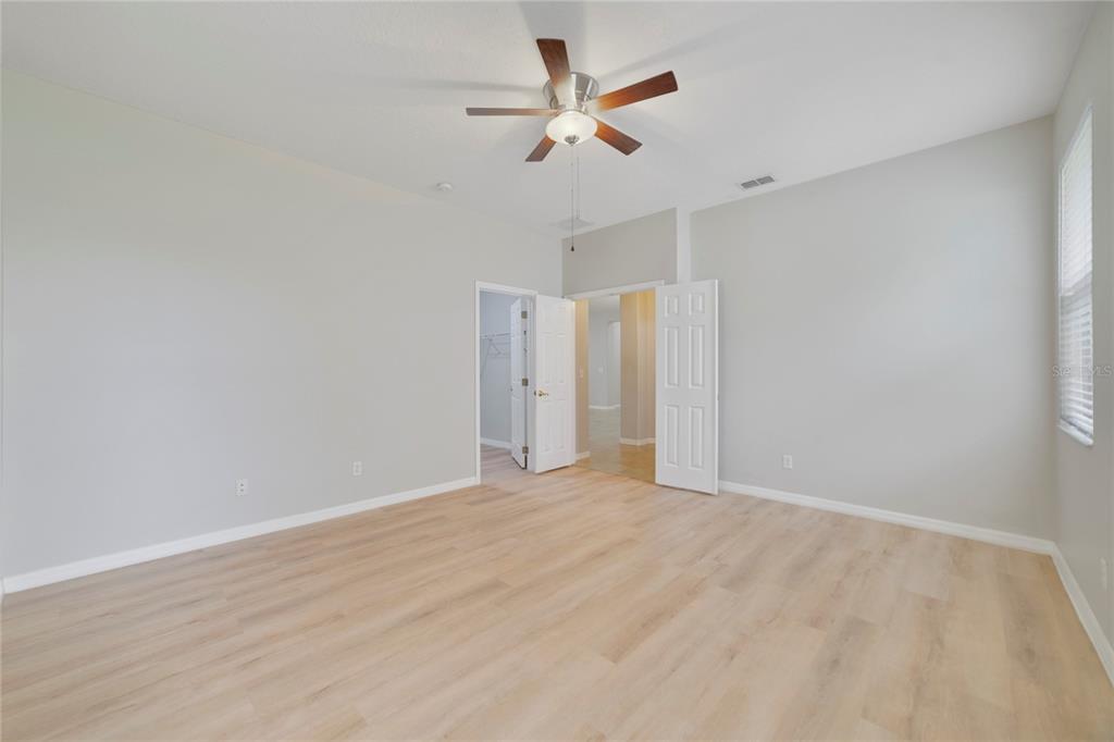 Ceiling Fan(s), High Ceilings, Kitchen/Family Room Combo, Open Floorplan, Primary Bedroom Main Floor, Solid Surface Counters, Split Bedroom, Walk-In Closet(s)