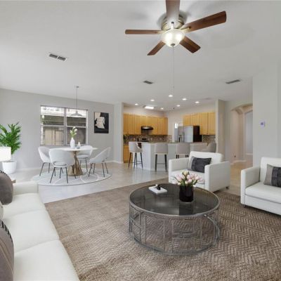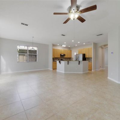 Ceiling Fan(s), High Ceilings, Kitchen/Family Room Combo, Open Floorplan, Primary Bedroom Main Floor, Solid Surface Counters, Split Bedroom, Walk-In Closet(s)