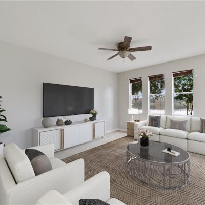 Ceiling Fan(s), High Ceilings, Kitchen/Family Room Combo, Open Floorplan, Primary Bedroom Main Floor, Solid Surface Counters, Split Bedroom, Walk-In Closet(s)
