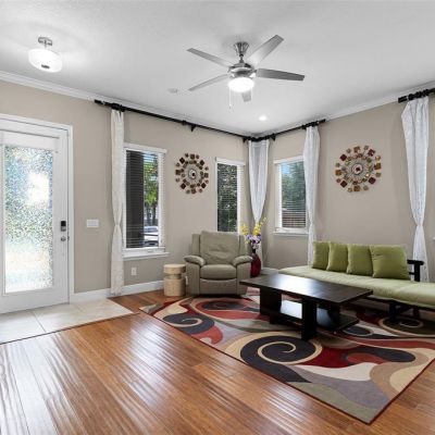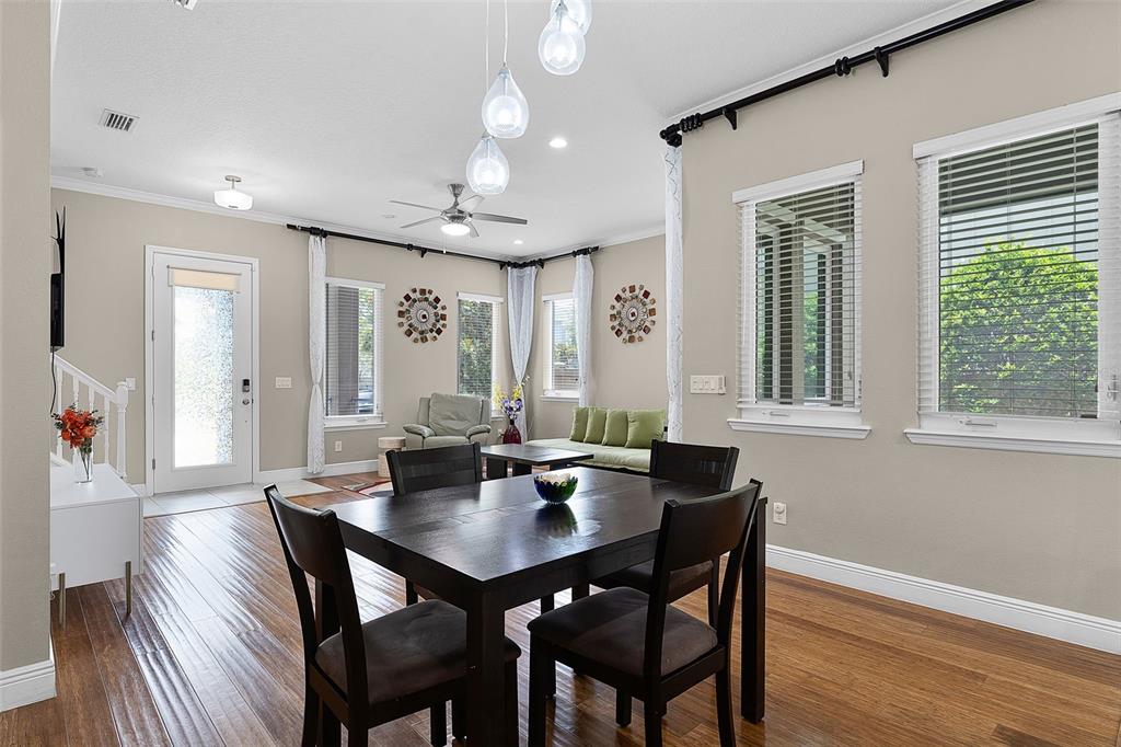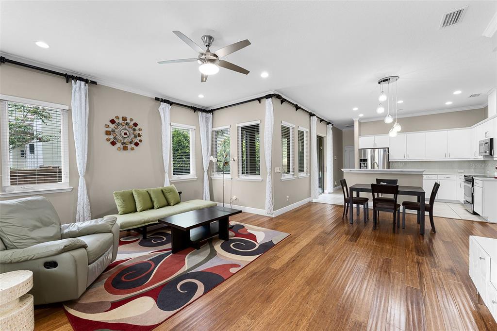 Ceiling Fan(s), Crown Molding, Eating Space In Kitchen, Kitchen/Family Room Combo, Living Room/Dining Room Combo, Open Floorplan, PrimaryBedroom Upstairs, Solid Wood Cabinets, Stone Counters, Thermostat, Walk-In Closet(s)