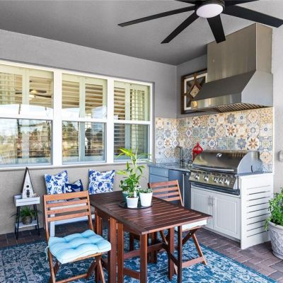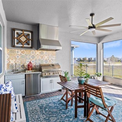 Irrigation System, Lighting, Outdoor Grill, Outdoor Kitchen, Private Yard, Rain Gutters, Sidewalk, Sliding Doors