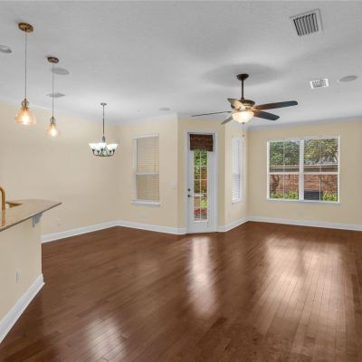 Ceiling Fan(s), Crown Molding, High Ceilings, Open Floorplan, Solid Wood Cabinets, Stone Counters, Thermostat, Walk-In Closet(s)