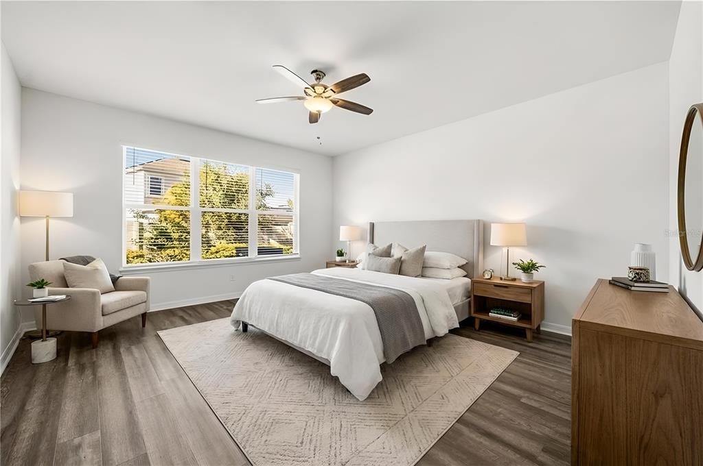 Ceiling Fan(s), Open Floorplan, Primary Bedroom Main Floor, Stone Counters, Thermostat, Tray Ceiling(s), Walk-In Closet(s)