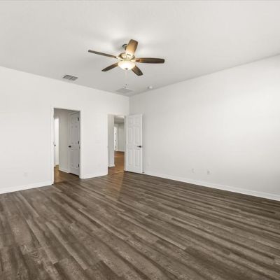 Ceiling Fan(s), Open Floorplan, Primary Bedroom Main Floor, Stone Counters, Thermostat, Tray Ceiling(s), Walk-In Closet(s)