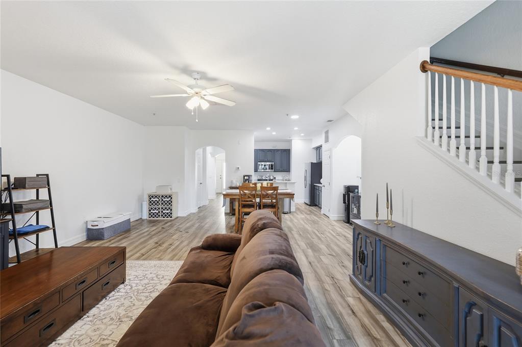Ceiling Fan(s), High Ceilings, Kitchen/Family Room Combo, Living Room/Dining Room Combo, Open Floorplan, PrimaryBedroom Upstairs, Stone Counters, Thermostat, Walk-In Closet(s), Window Treatments