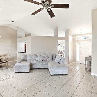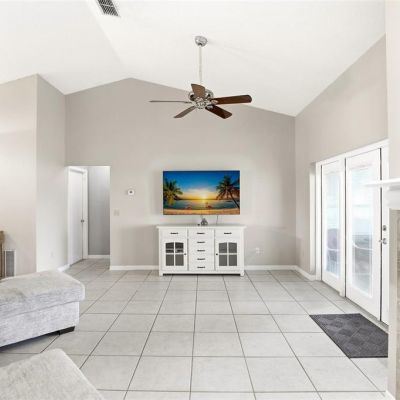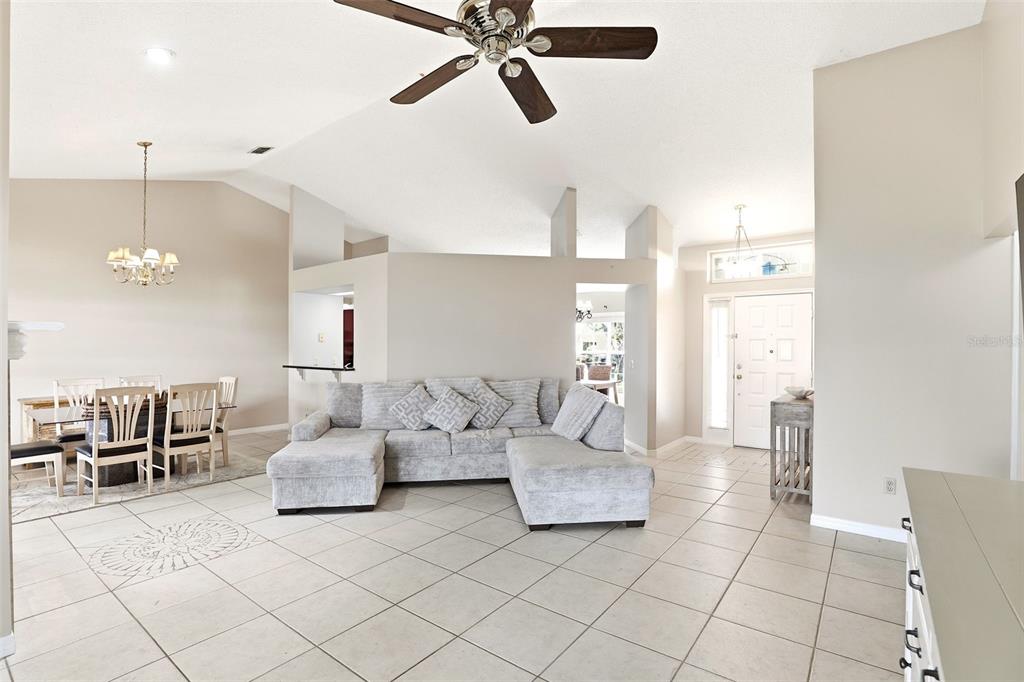 Cathedral Ceiling(s), Ceiling Fan(s), Eating Space In Kitchen, Living Room/Dining Room Combo, Solid Surface Counters