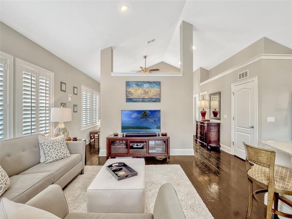 Ceiling Fan(s), Crown Molding, Eating Space In Kitchen, In Wall Pest System, Kitchen/Family Room Combo, Open Floorplan, Primary Bedroom Main Floor, Solid Wood Cabinets, Stone Counters, Walk-In Closet(s)