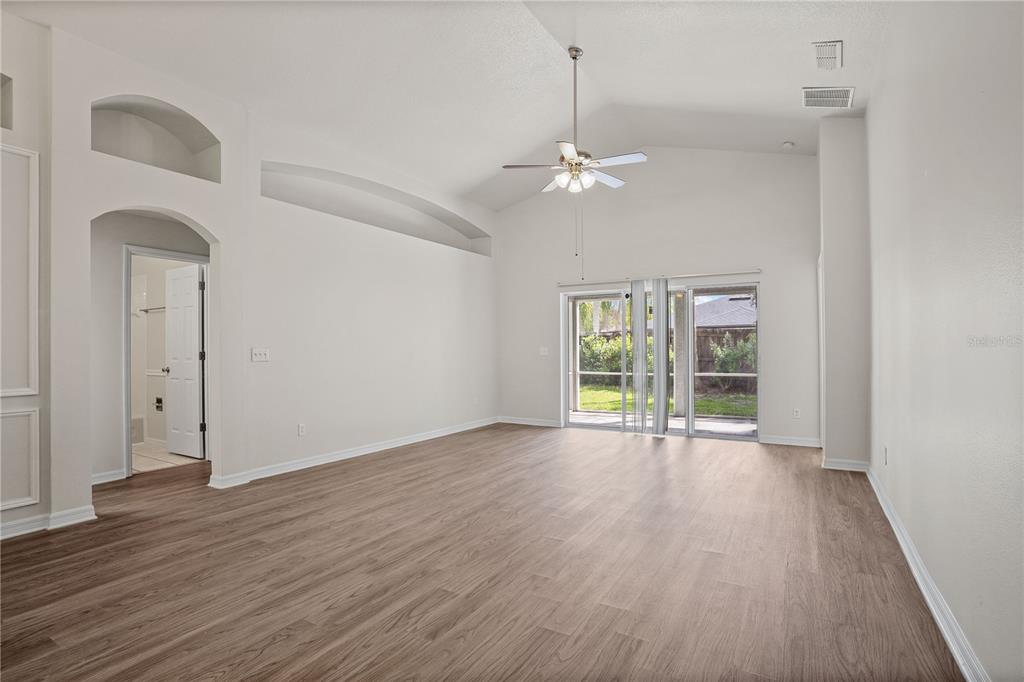 Ceiling Fan(s), Eating Space In Kitchen, High Ceilings, Living Room/Dining Room Combo, Open Floorplan, Solid Surface Counters, Split Bedroom, Thermostat, Walk-In Closet(s)